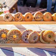 Deluxe Pancakes - 3 Per Person Assorted Toppings Include: Chocolate, Caramel, Strawberry Sauce, Maple Syrup & Whipped Cream Topped with Powdered Sugar (optional) Assorted Bagels with butter or cream cheese (Sesame, Plain, Everything, Sourdough, Asiago, Pumpernickel, Blueberry & Cinnamon Raisin) DRINKS: Coffee, Assorted Juice, Bottled Water and Tea Starting at: $16.99 per guest, Full Service and Cooked Onsite! Guests will be offered any 1 of the above items, unless otherwise stated. $1,500 Minimum Applies For All Package Menus, Unless Otherwise Stated